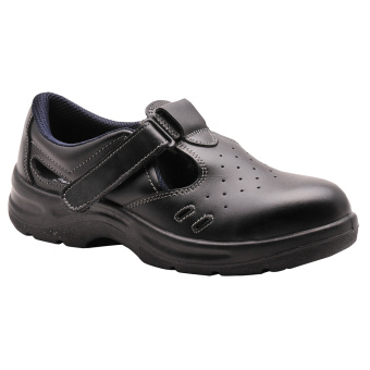 Сандалии защитные S1 со стальным подноском и перфорированной поверхностью для лучшей вентиляции при работе в теплых условиях. Имеют удобную застежку на липучке.